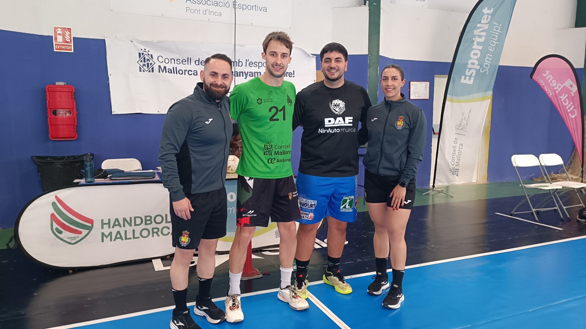 Antes del partido entre Handbol Mallorca y Balonmano Águilas se ha guardado un minuto de silencio por el fallecimiento de la madre de uno de los jugadores de la base del club y también, por el reciente deceso de uno de los hermanos del Presidente Jesús Alguacil.
