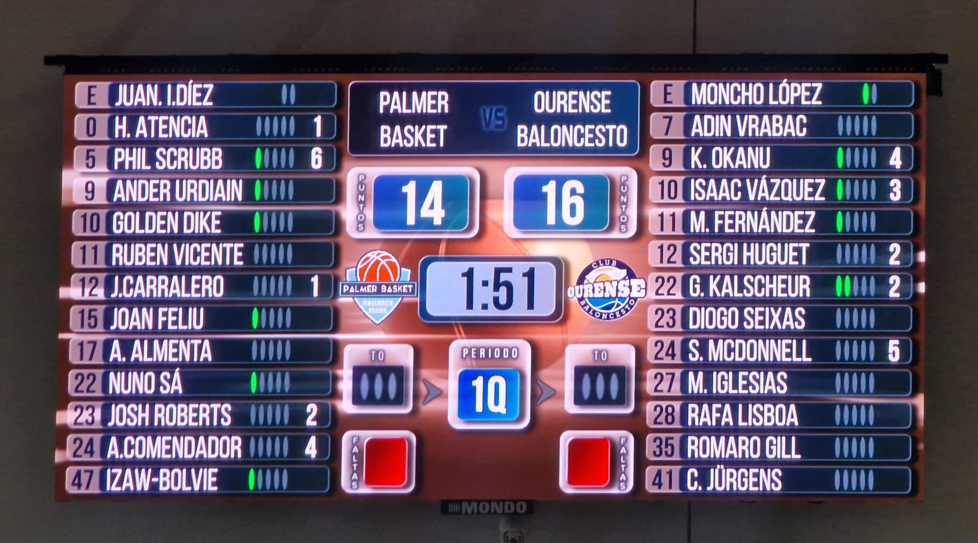 Vrabac (-), Okanu (11), Vázquez (3), Fernández (1), Huguet (2), Kalscheur (8), Seixas (4), McDonnell (7), Iglesias (6), Lisboa (9), Gill (1) y Jürgens (4).