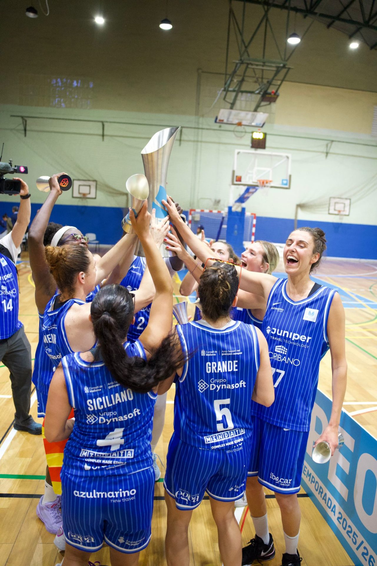 El conjunto balear vence 54-89 al Castellón y completa una temporada casi perfecta Azulmarino se ha acostumbrado a hacer posible lo imposible y esta vez no iba a ser menos. El conjunto dirigido por Alberto Antuña ha alzado la copa de campeonas de Liga Challenge a lo más alto del cielo valenciano tras vencer al Castellón -X. De esta manera, el grupo balear culmina el curso 25/26 rozando la excelencia y grabando su nombre en la historia. Azulmarino acudió a la última cita de Liga Challenge con las ganas de completar 29 victorias. A pesar de no haber ganado el saque como acostumbran, las mallorquinas dirigieron la batuta del primer cuarto. Carmen Grande estrenó la lata al minuto y medio de partido. Castellón intentó armar varios ataques, pero la defensa balear supo contener a las locales gran parte de los primeros 10 minutos. Grande, Jane Asinde y Gedna Capel fueron las encargadas de darle forma al intenso parcial que al ecuador se situaba 2-8. Ante el gran inicio de las visitantes, en un momento de flaqueza defensiva por parte de Azulmarino, Castellón no optó por venirse abajo y compitió hasta dejar el primer parcial 13-17. En el inicio del segundo capítulo, las castellonenses demostraron su valía recortando varios puntos a Azulmarino, pero Maria España Almendro contestó con un triple para recordar el por qué son campeonas. Una Marina Aviñoa inspirada asistió a la argentina Amaiquén Siciliano para continuar convirtiendo e ir mostrando los habituales detalles de calidad hasta en la última fecha. Castellón tuvo varias oportunidades para poner ante las cuerdas al líder, no obstante sus lanzamientos se vieron escupidos por el aro. Las de Castellón no lograron frenar al combinado rival y los dos conjuntos partieron al descanso con un 25-38 en el marcador. A la vuelta de vestuarios, Azulmarino continuó con su actitud arrolladora. Desde la primera jugada que tejió el conjunto balear, este sacó provecho. A unos segundos de la mitad del cuarto, el combinado azulón aumentó la diferencia a 20 puntos. Pese a la diferencia, Castellón vivió sus mejores minutos olvidando la baja efectividad de la primera parte. Azulmarino no doblegó ante la nueva cara de las locales y finalizó la tercera entrega 46-66. En el capítulo final de Azulmarino en Liga Challenge, las baleares no permitieron que se bajase la intensidad. Cada balón disputado fue luchado como si fuese el inicio del enfrentamiento. Las visitantes dominaron el juego. El equipo de Antuña, completamente coordinado, se encontraba en los espacios reducidos y de la mano de Asinde y Capel, la cuenta final aumentó hasta quedar 54-89. Tras el encuentro, Alberto Antuña declaró emocionado: “Ha sido un año largo, pero muy bonito. Lo que ha conseguido Azulmarino, Gabriel Subías, Jordi Riera… han construido un equipo espectacular. No va a haber mejor equipo en la historia de esta competición. Mallorca vuelve a tener un equipo en primera división y estoy feliz por haberlo conseguido”. Ficha Técnica: PARCIALES: 13-17 / 12-21 / 21-28 / 8-23 (54-89) PLANTILLA FUSTECMA NBF CASTELLÓ: 7. L. Campos (6); 8. C. Pérez (2); 10. S. Basaez (7); 11. A. García (-); 15. L. De Giacomo (-); 16. L. Ruiz de la Hermosa (1); 18. S. Carli (3); 20. F. Asemota (1); 25. G. Aiello (15); 32. J. Gomez (11) PLANTILLA AZULMARINO: 0. E. Maguire (3); 2. A. Bulgak (8); 4. A. Siciliano (10); 5. C. Grande (6); 7. M. Aviñoa (8); 10. K. Rakovic (-); 11. M. García (-); 13. I. Mbulito (2); 14. M. E. Almendro (5); 22. G. Capel (24); 35. J. Asinde (18); 77. A.Torrens (5)